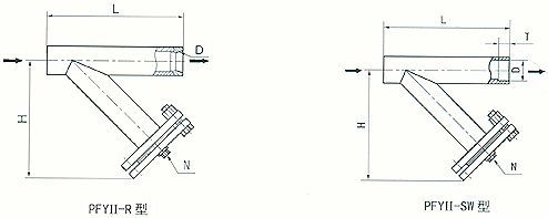 (4)Y型焊接锥管螺纹式(PFYII-R型)、承插焊式(PFYII-SW型) (DN15—40,PN≤5.OMPa)