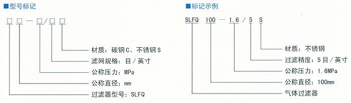 (2)SLFQ型气体过滤器 ■产品概述 SF0型气体过滤器是一种新型、高效气体除尘设备,广泛用于石油、天然气工业部门一般含尘量的气体主管线和旁通管。亦是城市天然气、煤制气输配系统安全、可靠运行不可缺少的气体净化设备。具有结构先进、除尘效率高、操作维护方便等优点。 ■主要技术参数 公称直径:DN40-DN300 工作压力:1.0—5.4MPa 工作温度:≤80℃ 处理量:≤12000m3/h(工作状态下) ■选用要点 ◆选用本系列产品必须注明介质,操作压力及温度。 ◆SLF0型气体过滤器主要用于干气过滤,如介质含水较高时,应在设备前安装我公司生产的预分离器,以保证过滤器效果。 ■产品规格