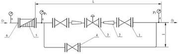 | 附图1 设独立阀门室的氧气压力调节阀组示意图 |