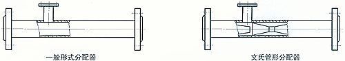 适用于二股或二股以上流体进料,当主流与次流压力不平衡时选用文氏管形分配器, 当主流与次流压力平衡时选用一般形式分配器。